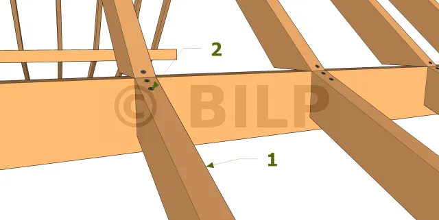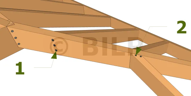 - 1. den ersten Aufschiebling zwischen dem Gratsparren und dem Dachrand einbauen und befestigen, indem er durch die Innenseite des Gratsparrens geschraubt wird.