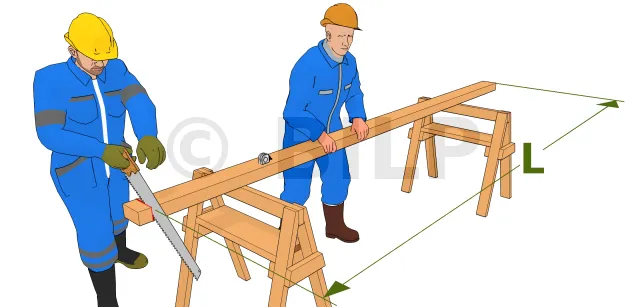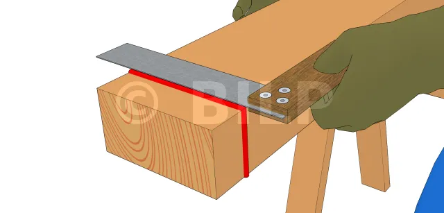 Dieser erste Schritt sollte für jeden Holzarbeiter ein Reflex sein. Man nimmt das Quadrat auf einer Seite des Balkens und sägt es mit einer Kreissäge oder einer Handsäge ab. Wenn nach Überprüfung der gekauften Pfette das Ende bereits rechtwinklig ist, kann dieser Schritt übersprungen werden.