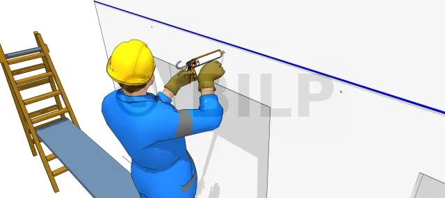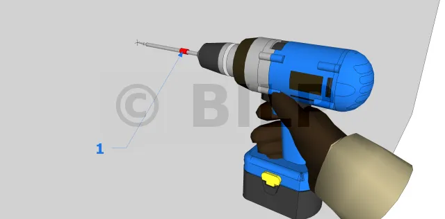 - Wenn Sie die Tiefe der Löcher kennen (siehe hier für den Fall von Vollwandbefestigung und für den Fall von Hohlwandbefestigung), markieren Sie diese mit Klebeband auf dem Bohrer. Bohren Sie dann an den Punkten an der Wand bis zu diesem Band.