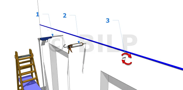 Simulieren Sie die Ausrichtung der 2 Löcher (Pfette und Wand), indem Sie die Pfette auf die Wand legen. Schauen Sie durch die Pfette, wenn Sie die Löcher in der Wand sehen können. Wenn nicht, lokalisieren Sie die Löcher erneut mit der Bohrmaschine.