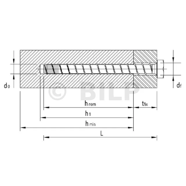 - Durchmesser der Durchgangsbohrung im zu befestigenden Element,df12mm
