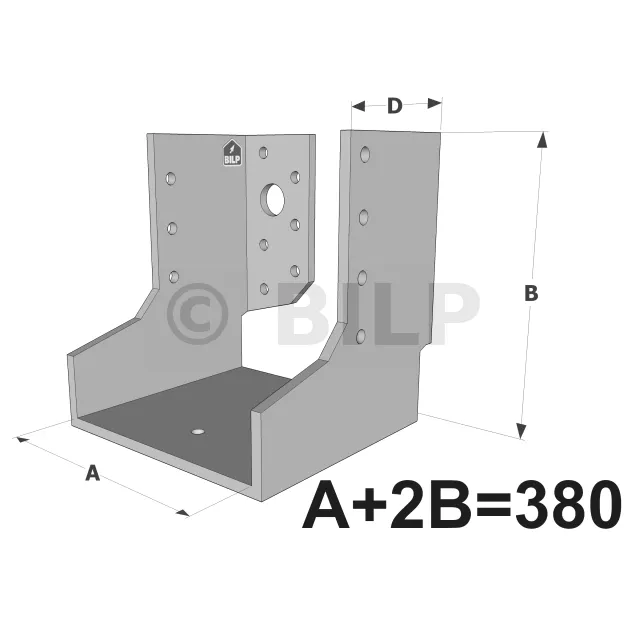 Große Balkenschuhe mit innenliegenden Schenkeln, Baureihe GLI ECONOMIC (380 mm breit, 4 mm dick, 90 mm tief) - Réf. GLI380/4X