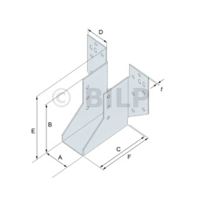 Balkenschuh mit Schenkeln für Dachbinder, Höhe (B) : 90 mm, Breite (A) : 38 mm, - Réf. SHT115/38