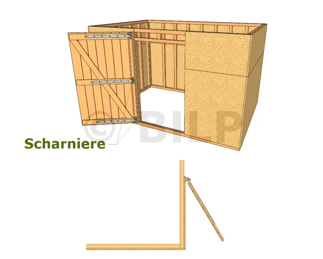 Befestigen Sie die Scharniere an den Seiten des Türblatts. Diese Scharniere ermöglichen das freie Öffnen und Schließen der Tür. Halten Sie die Tür beim Anbringen der Scharniere stets sicher geschlossen, so dass die Tür vollständig geschlossen ist. Legen Sie rundum Keilen ein, um die Tür in der Öffnung zu zentrieren, und entfernen Sie diese, wenn die Scharniere in Position sind.
