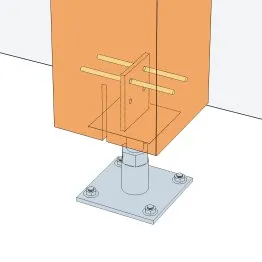 Der Hochlastpfostenträger PIBA110/160 ermöglicht durch seinen vertikalen Kern eine starke Lastrückgewinnung bei Druck sowie eine Rückgewinnung von Hubkräften.