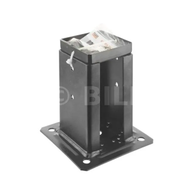 Die schwarzen quadratischen Pfostensockel für „ready-to-fix“ claustras PPJNCPB werden für die Erstellung kleinerer Arbeiten wie Zäune und leichte Gartenkonstruktionen empfohlen. Sie sind sehr einfach zu installieren und können an eine Betonstütze geschraubt oder an Holz geschraubt werden.