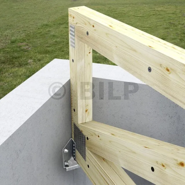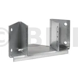 Dieser Balkenschuh ermöglicht die Aufnahme von Dachbindern in gemauerten Ecken mit einem Winkel von 90°. Er ist in der Breite wahlweise zwischen 76 und 150 mm faltbar und in der Breite 38 mm erhältlich.