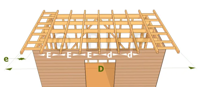 - E : Praktischer Achsabstand zwischen aufeinander folgenden Dachsparren,