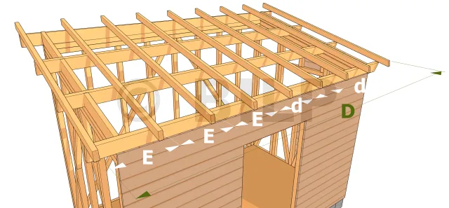 - D : Achsabstand zwischen den beiden Endsparren,