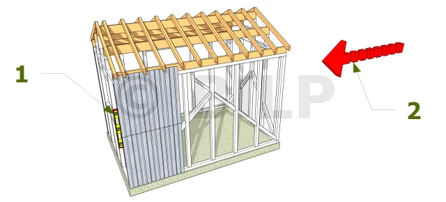 Beginnen Sie den Einbau auf der dem vorherrschenden Wind entgegengesetzten Seite (linker oder rechter Rand). Nehmen Sie sich Zeit, um diese erste Platte korrekt zu verlegen. Stellen Sie sicher, dass es lotrecht ist, um die Ausrichtung der nächsten Platten beizubehalten.