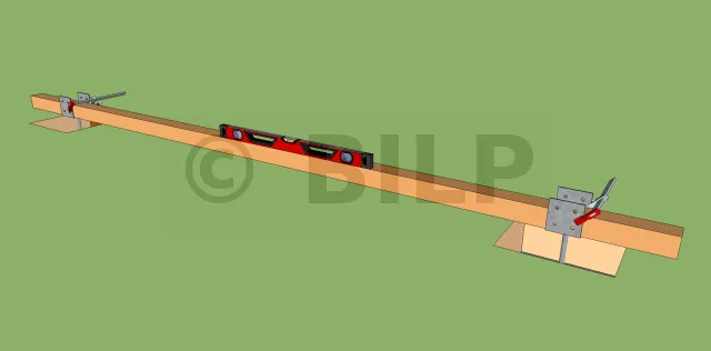 - Legen Sie die Wasserwaage oben auf die Pfette.