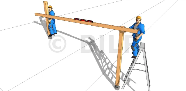 Bei dieser Aufgabe müssen die Pfosten senkrecht stehen. Prüfen Sie ihre Geradheit vor dem Start und stabilisieren Sie sie mit provisorischen Verstrebungsleisten.