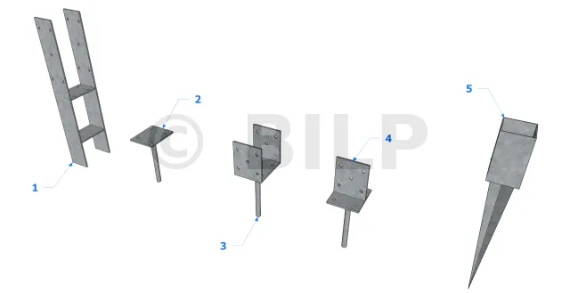 | Artikel | Abmessungen des Trägers [mm] | Abmessungen des Holzträgers [mm] | Abmessungen [mm] | Bohrungen auf Träger | Bohrungen auf den Nebenträger | ||||||||