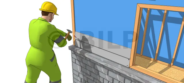 Platzieren Sie die zweite Verkleidung unter Verwendung der ersten Reihe als Referenz. Wie bei der ersten Reihe immer an den Pfostenpositionen an die Wand nageln. Zeichnen Sie waagerechte Kreidelinien auf die Wand, um die Bezugslinien zu markieren, und achten Sie dabei darauf, dass sich bei jeder Reihe die Verkleidungen um 3 cm überlappen.
