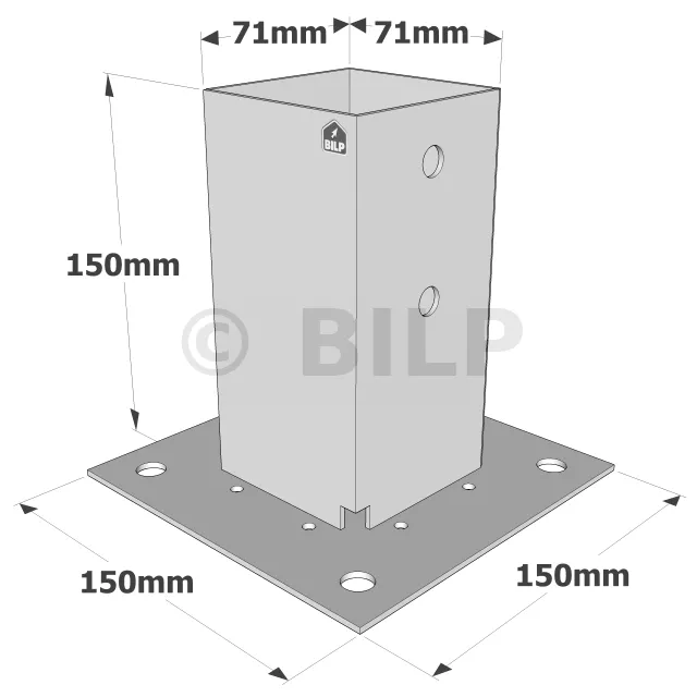 Quadratische Pfostensockel auf Platte PPJBT werden für die Erstellung kleinerer Arbeiten wie Zäune und leichte Gartenkonstruktionen empfohlen. Sie sind sehr einfach zu demontieren und können an Beton- und Stahlstützen angeschraubt oder an Holz geschraubt werden.