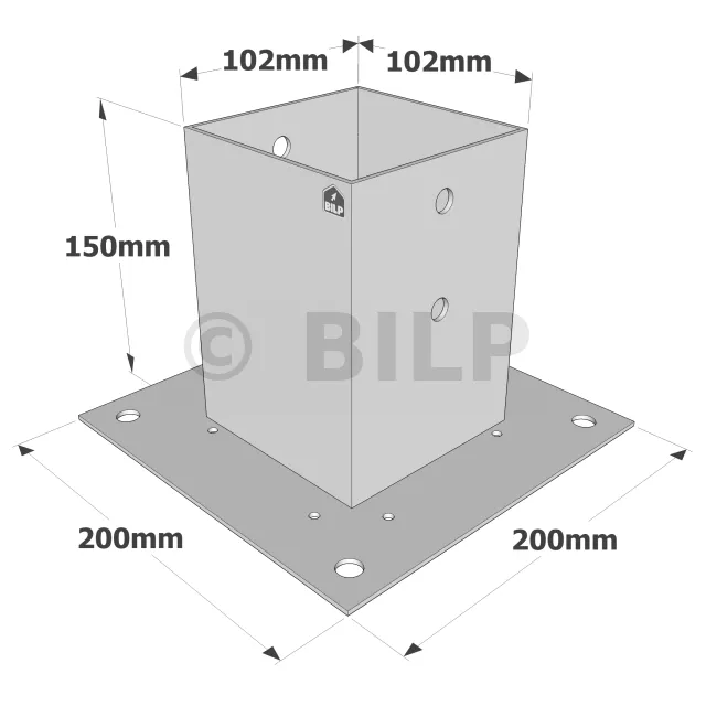 Quadratische Pfostensockel auf Platte PPJBT werden für die Erstellung kleinerer Arbeiten wie Zäune und leichte Gartenkonstruktionen empfohlen. Sie sind sehr einfach zu demontieren und können an Beton- und Stahlstützen angeschraubt oder an Holz geschraubt werden.