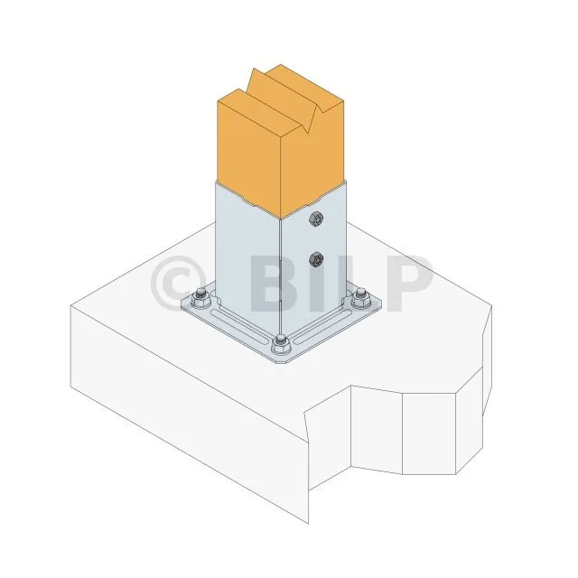 - 1 Pfostenfuß PPJBT70 ou PPJBT90 aus feuerverzinktem Stahl,