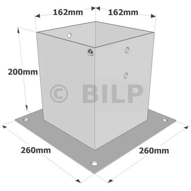 Quadratische Pfostensockel auf Platte PPJBT werden für die Erstellung kleinerer Arbeiten wie Zäune und leichte Gartenkonstruktionen empfohlen. Sie sind sehr einfach zu demontieren und können an Beton- und Stahlstützen angeschraubt oder an Holz geschraubt werden.
