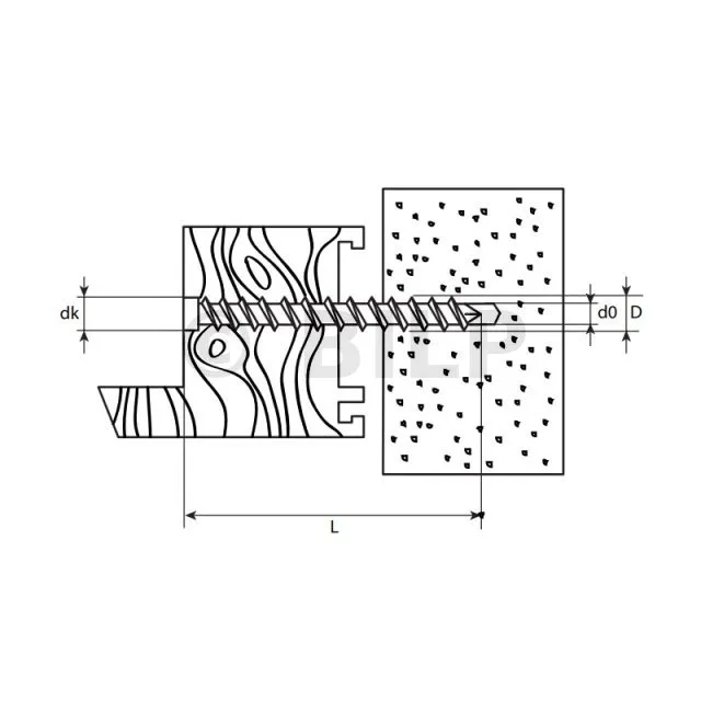 Einbaumontage in Holzprofilen. Für die Montage von Aluminium- oder Kunststoffprofilen ist die Flachkopf-Rahmenschraube („mit Kopf“) besser geeignet. - Montage ohne Dübel.