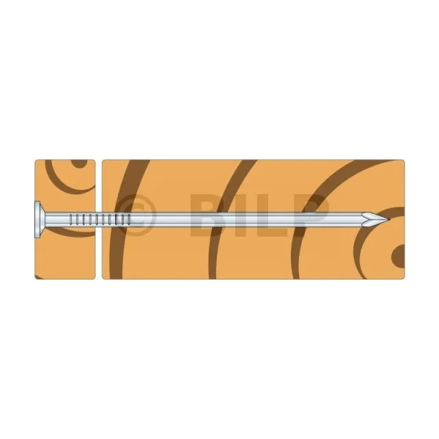 Die geriffelte Spitze mit flachem Kopf von FIRKS wird für die Verbindung von Holz auf Holz in einer korrosiven Umgebung empfohlen.