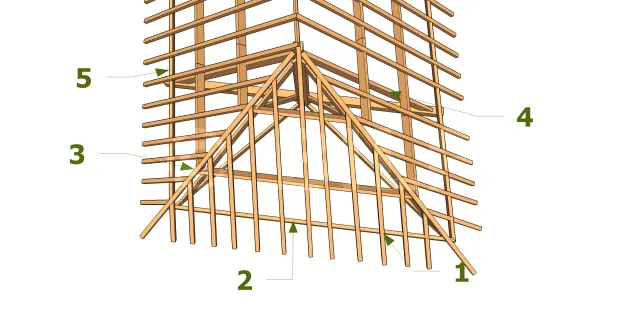 - Eine Schraube, deren Achse bei ESCR(XXX) 45 bis 90° von der Holzmaserung und bei den anderen Schrauben 90° von der Holzmaserung entfernt ist.