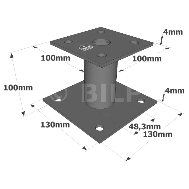 1. Platziere die obere Platte des Stützenfußes (Maße 100 x 100 mm) unter dem Pfosten.