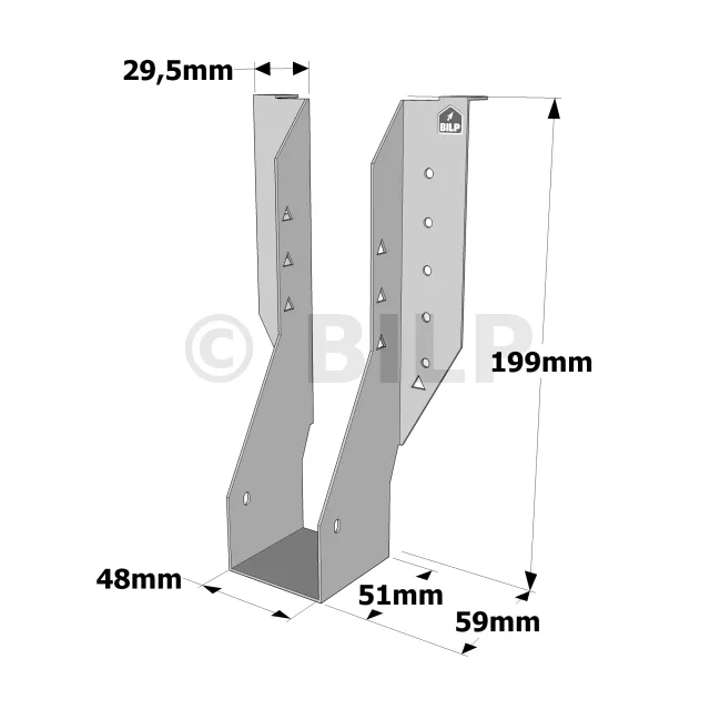 Die IUSE-Seitenflanschbügel garantieren dank der oberen Flansche eine einfache Installation und sorgen gleichzeitig dafür, dass der Untergurt durch starke Haftung an Ort und Stelle gehalten wird. Die Vernagelung erfolgt an den Seitenflanschen nach eventueller Vorpositionierung mit dem „Speed-Zink“.