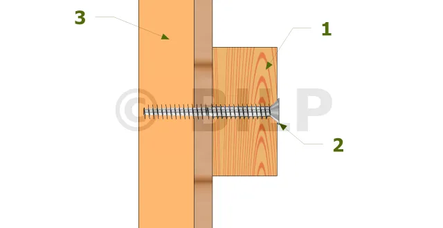 - Befestigung von Weichholzlatten an Weichholzbalken.