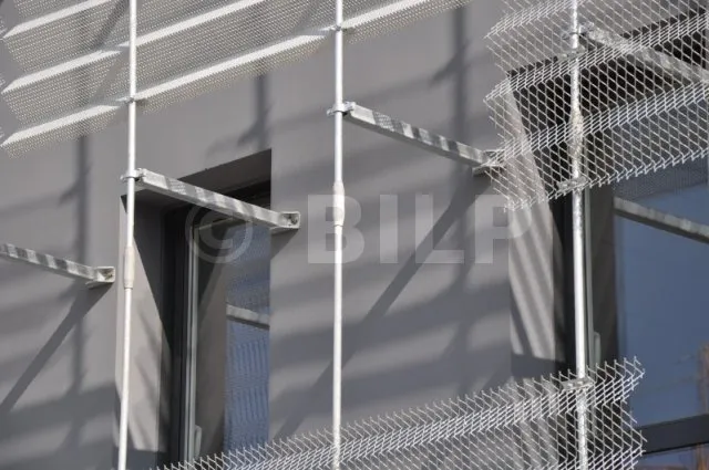 - 4 : Stabilisierung des Ständerwerks durch Anbringen eines schrägen Arms an ihm, der seinerseits am Boden befestigt ist.