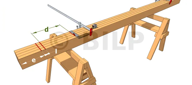 Option 1 : Legen Sie die beiden Schablonen zwischen die Sparren und richten Sie die Flächen der Schablonen an den Pfetten aus. Es braucht zwei Personen, um die wenigen Anpassungen vorzunehmen, die erleichtert werden müssen.