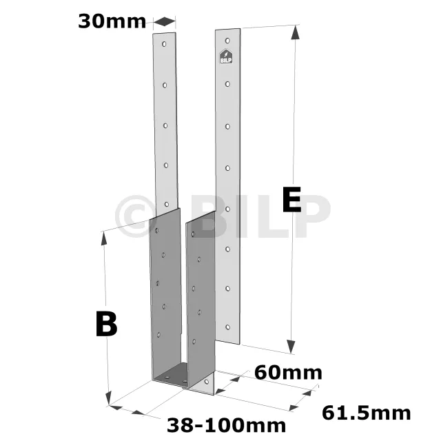 - Gefaltete Flügel zur Höhenverstellung des Schuhs im Verhältnis zum Stützelement. Nageln Sie die gefalteten Flügel fest.