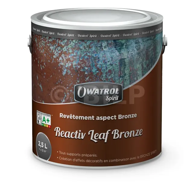 - Tragen Sie eine Schicht REACTIV LEAF BRONZE mit einem Pinsel oder einer Rolle (mittleres Haar) auf, um die solide, trockene und saubere Oberfläche zu bedecken, die ordnungsgemäß vorbereitet wurde (siehe oben).