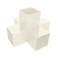Es ermöglicht die senkrechte Verbindung von zwei 90x90-mm-Trägern mit einem weiteren 90x90-mm-Träger, wobei das Ganze von einem 90x90-mm-Vertikalpfosten getragen wird.
