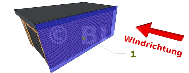In diesem Fall wird eine Holzkonstruktion oder sogar die Elemente, aus denen sie besteht, im Allgemeinen in einer vertikalen Ebene aufgenommen, so dass wir sagen können, dass das Element senkrecht zur Windrichtung steht. Daher wird der Wert von Cx immer gleich 1 sein.
