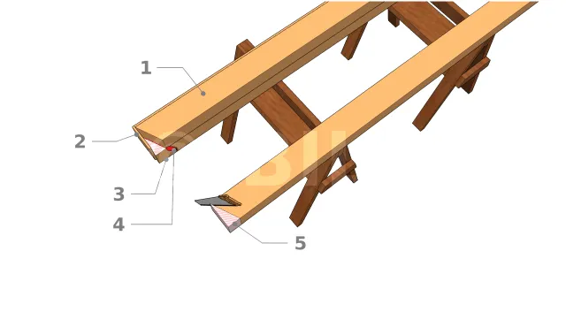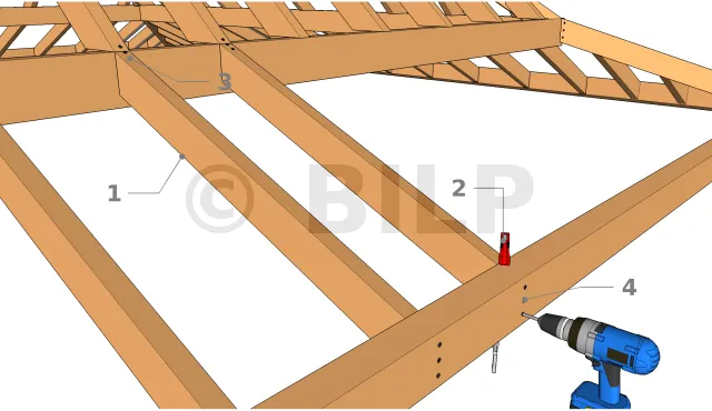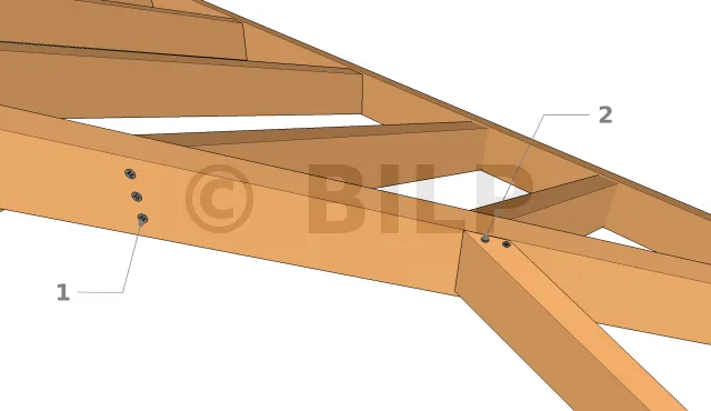 - 1. Befestigen Sie den Kopf des Gratsparrens mit verdrehten Nägeln an der Fußpfette.