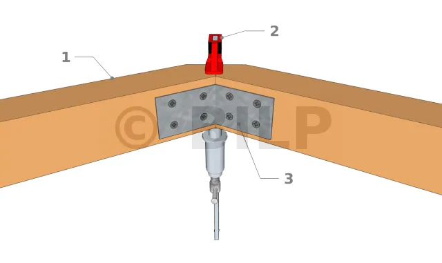 - 3. Befestigen Sie die Schwelle mit einem Metallwinkelverbinder, der mit Schrauben oder Nägeln an den Schwelle befestigt wird. Aus ästhetischen Gründen ist es vorzuziehen, die Winkelverbinder auf der Innenseite der Schwellen zu befestigen.
