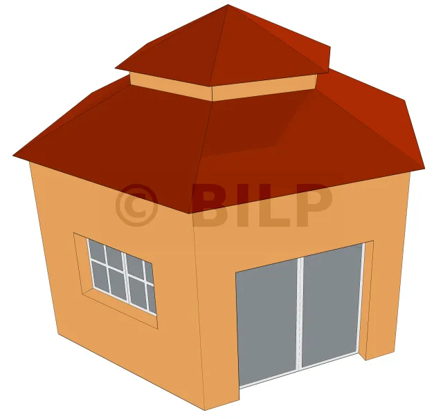 Das Dach mit mehreren Giebeln ist ein Schrägdach mit mehreren Neigungen. Sie wird im Allgemeinen für eine polygonale Struktur wie z.B. einen hexagonalen Pavillon verwendet.