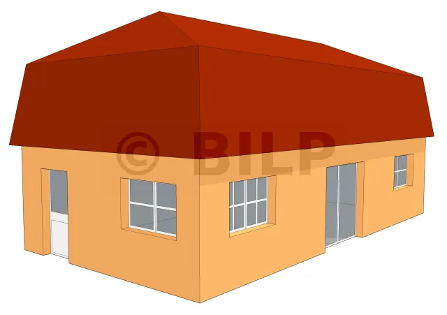 Das Krüppelwalmdach ist ein Dach mit zwei Neigungen, eine für die 2 Hauptseiten und eine weitere für die 2 Kruppen.