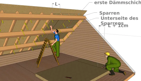 - 2 : Erste Dämmschicht zwischen den Sparren