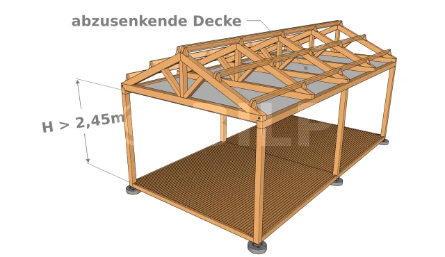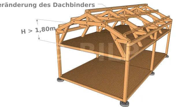 Sie besteht darin, die Decke des Erdgeschosses oder des ersten Stockwerks abzusenken, um mehr Höhe im Dachgeschoss zu erreichen.