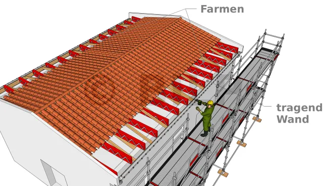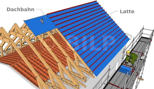 Zu Beginn werden Sie sich ausrollen und den Dachbahn aufstellen. Dann können Sie die Latten verschrauben.