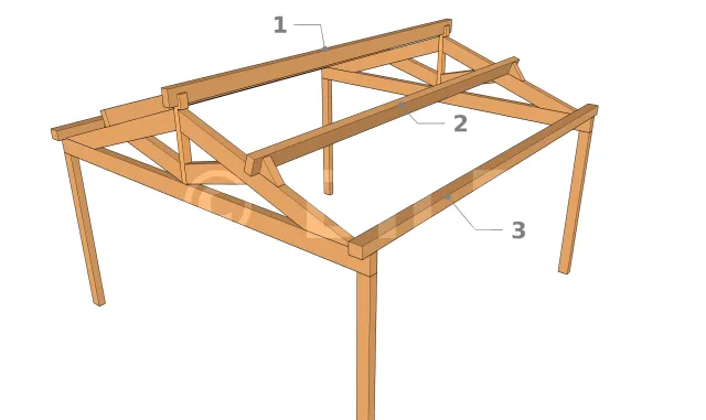 Es gibt drei Arten von Pfetten in einem Dachstuhl. Ihre Namen unterscheiden sich je nach ihrer Position in dem Dachstuhl.