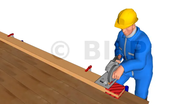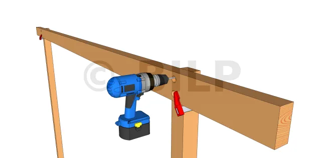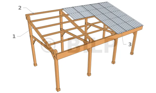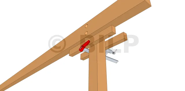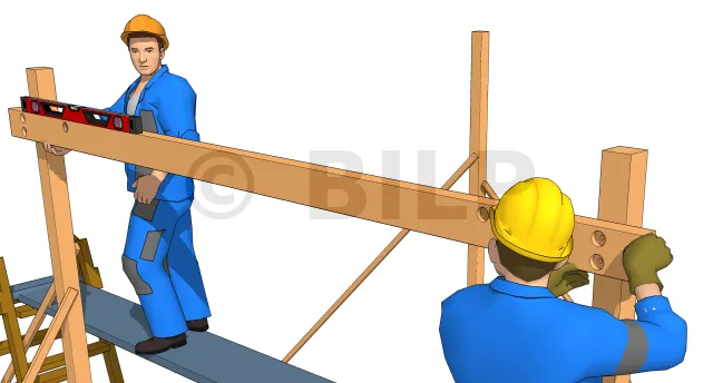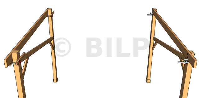 - Auf der rechten Seite haben wir eine Pfette, die durch Ausklinken und Verschrauben befestigt wird.