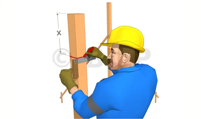 Entfernen Sie den Pfosten, nehmen Sie die Dicke der zu machenden Ausklinkung mit einem Quadrat und machen Sie die Ausklinkung, indem Sie den überschüssigen Teil entfernen. Siehe dazu den Artikel über einen Zapfenstoß machen.