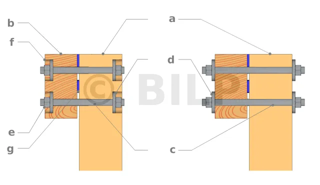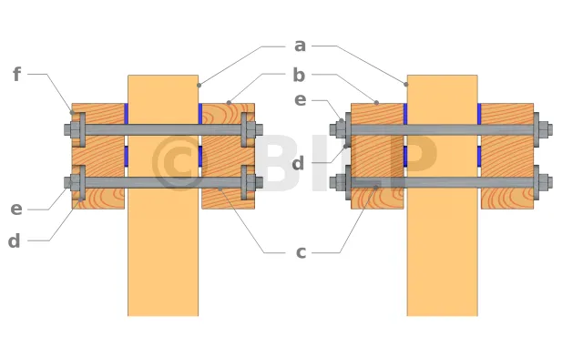 Bohren Sie mit einem flachen Holzbohrer mit einem Durchmesser, der etwas größer als der der Unterlegscheibe ist, von der Mitte der Löcher bis zu einer Tiefe = Dicke der Mutter + Dicke der Unterlegscheibe + Längenrand der Stange.