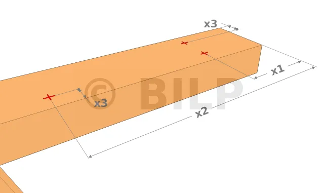 Erstellen Sie an beiden Enden der Pfette Markierungen in den Abständen x1, x2 und x3.