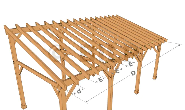- E : Praktischer Abstand zwischen zwei aufeinander folgenden Dachsparren,