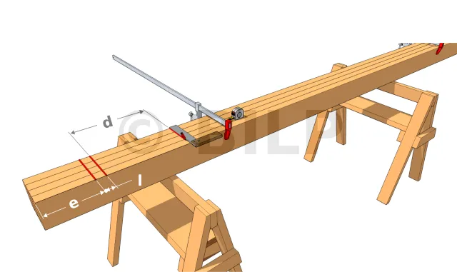 - d : Abstand zwischen den Sparren = Schablonenlänge.