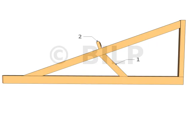 Der Wert der Neigung der Strebe hängt daher von der Position der Mittelpfette ab, sollte aber nicht unter 45° liegen.