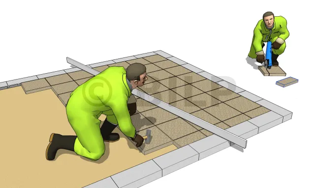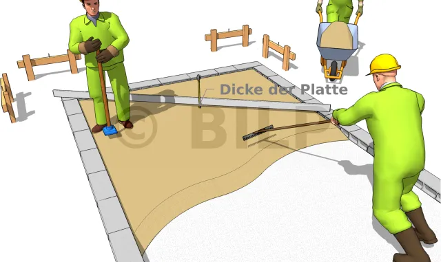Verdichten Sie den Boden so weit wie möglich mit einem viereckigen Stampfer. Gießen Sie dann etwas Sand in den Boden, um ihn auszugleichen. Neu verdichten.